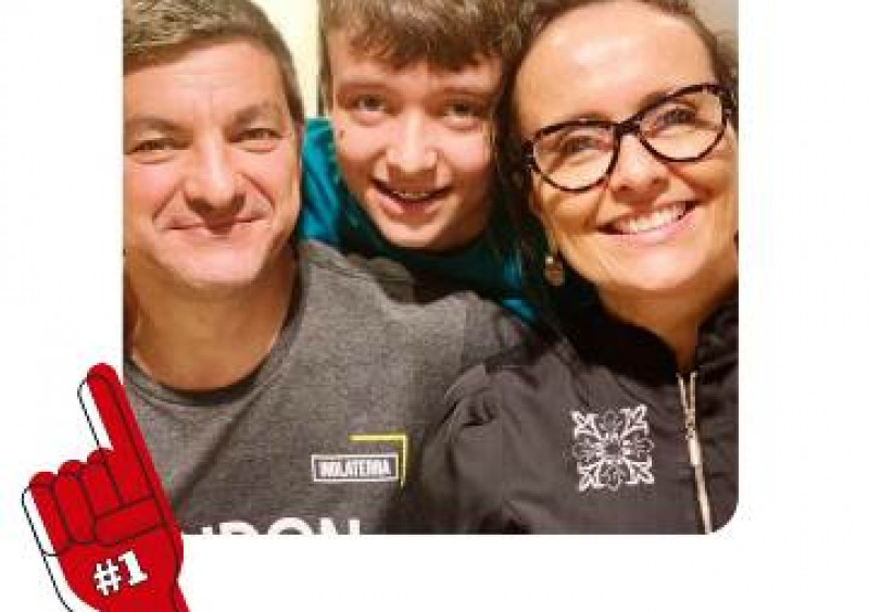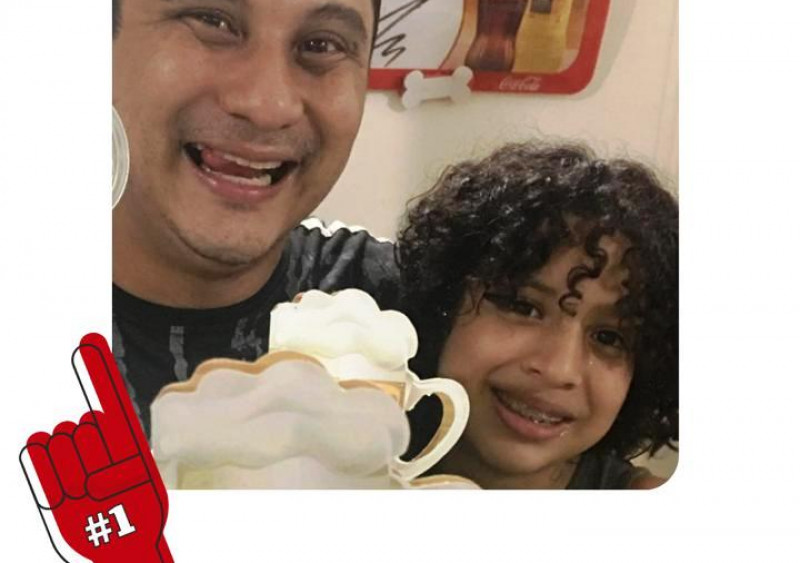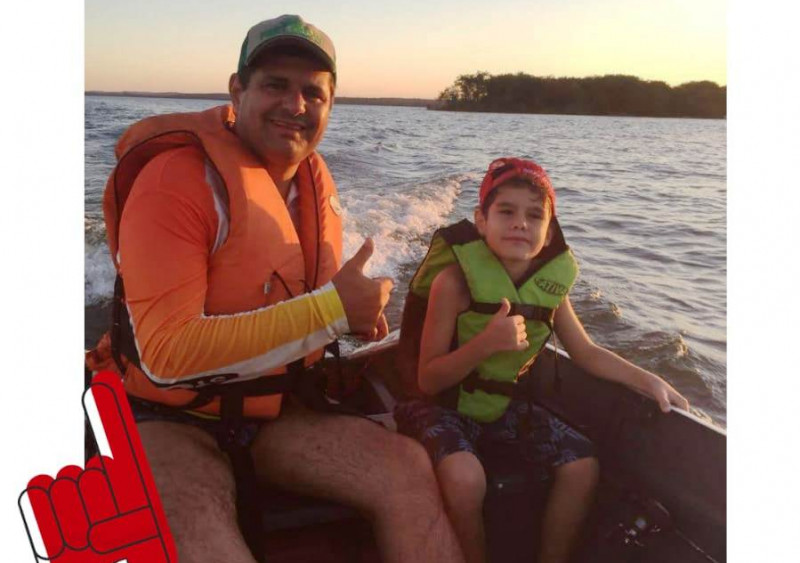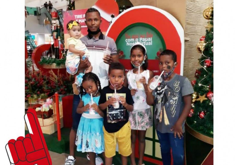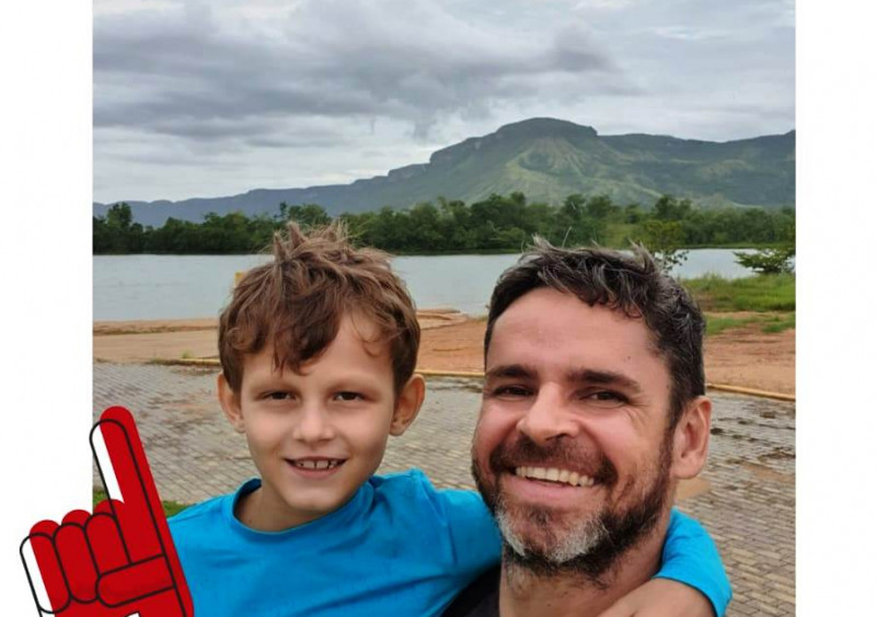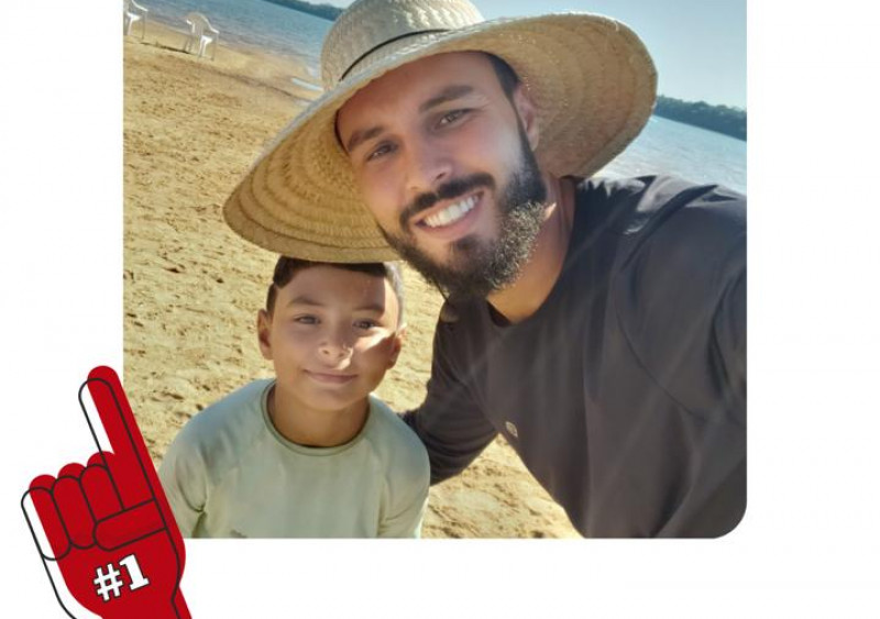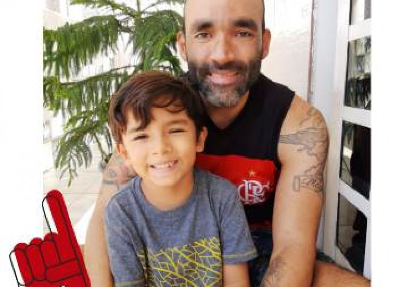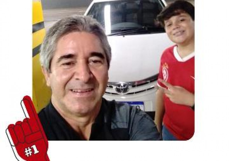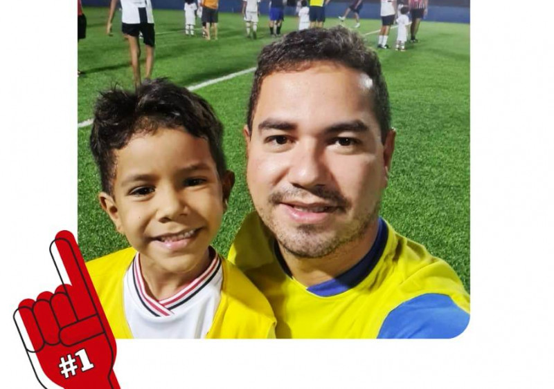 Uma bola oficial de futsal saiu para o pai do garoto Tito, o Ladislau.