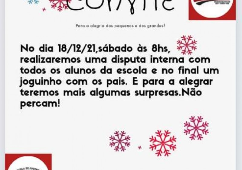 Durante o evento, haverá várias surpresas. Não perca esta oportunidade, antes do recesso das atividades. As aulas voltarão no dia 4 de janeiro.