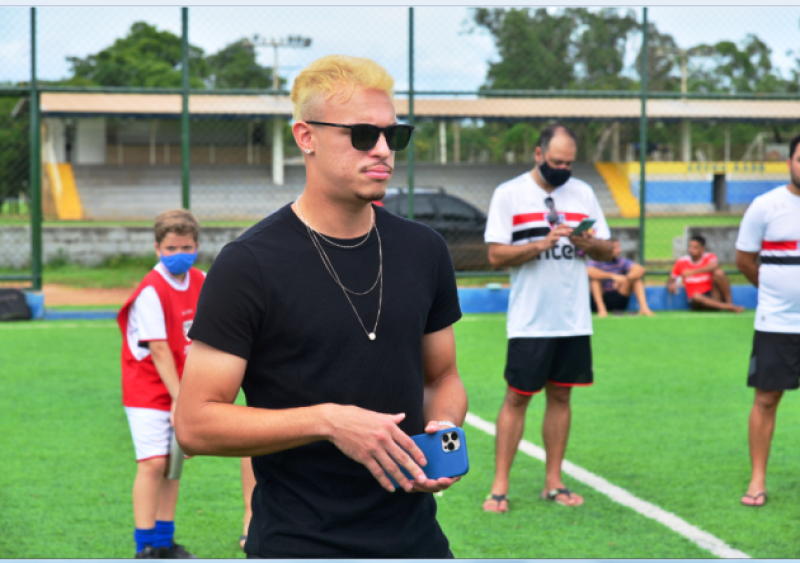 Danilo Gomes depois foi cercado por alunos e pais para tirar uma foto de lembrança ao lado do atleta. Este ano Danilo Gomes, que é jogador do SPFC, esteve emprestado ao Cuiabá, no Brasileiro 2021. E agora retorna ao time do Morumbi.