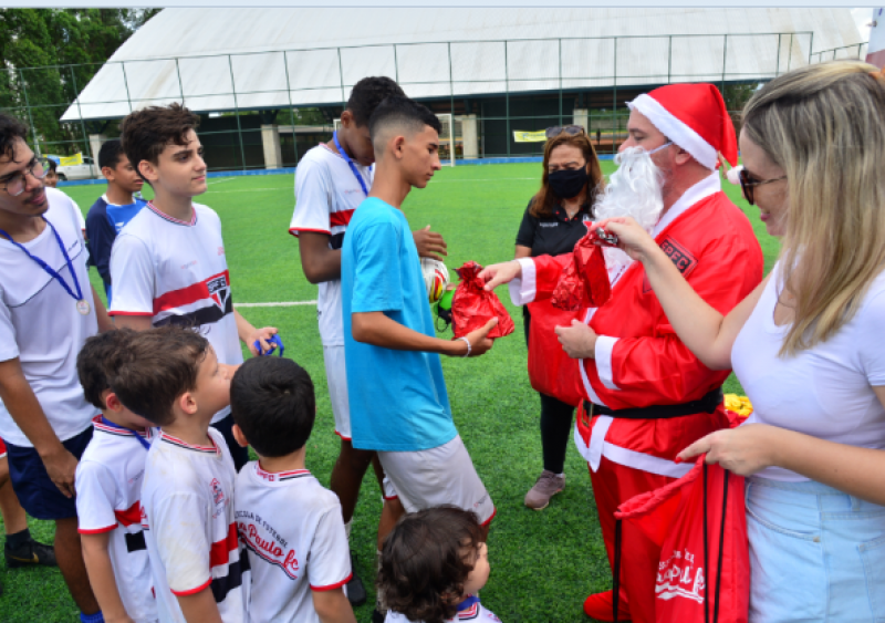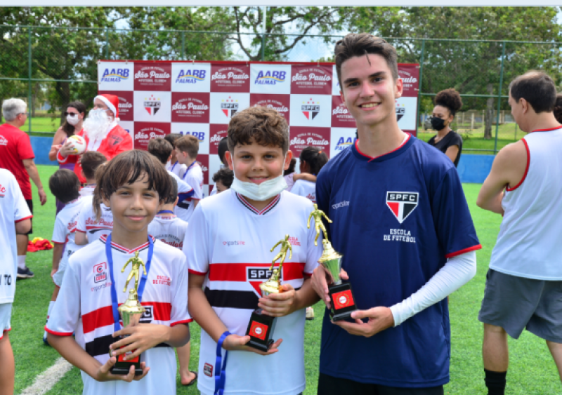 A Escola Oficial do São Paulo sediada na AABB Palmas encerrou as atividades do ano de 2021, neste último sábado, dia 18 de dezembro, em grande estilo realizando o Torneio Interno, que contou ainda com a presença ilustre do jogador do SPFC, Danilo Gomes e do Papai Noel.